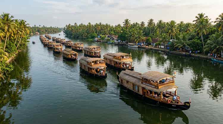 The tour begins at Cochin International Airport (COK) or Ernakulam Junction (ERS) railway station and concludes at the same locations after the Alleppey cruise.